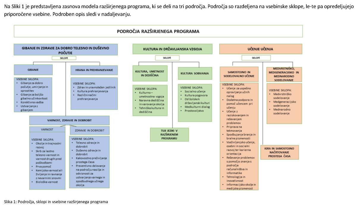 Nov koncept razširjenega programa zajema spodnje dejavnosti, ki smo jih doslej poznali kot: