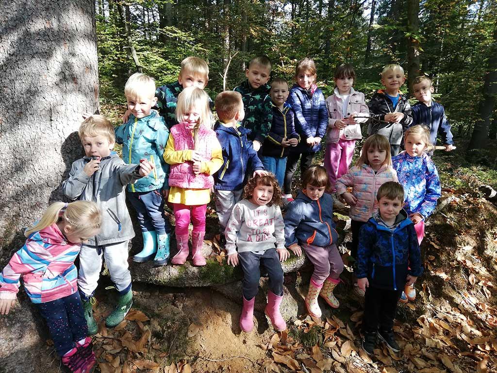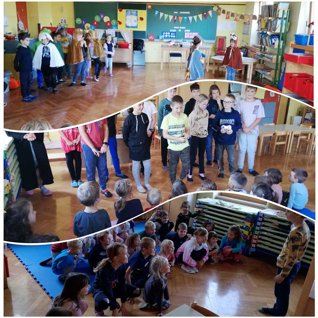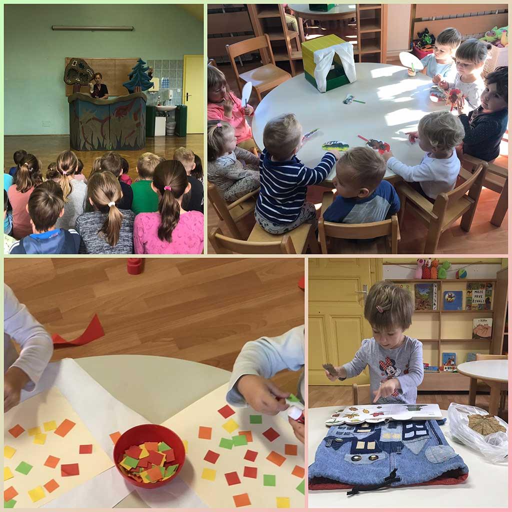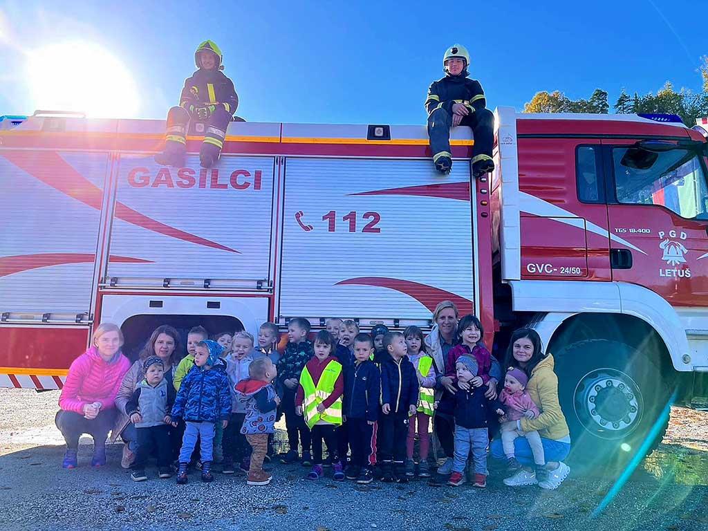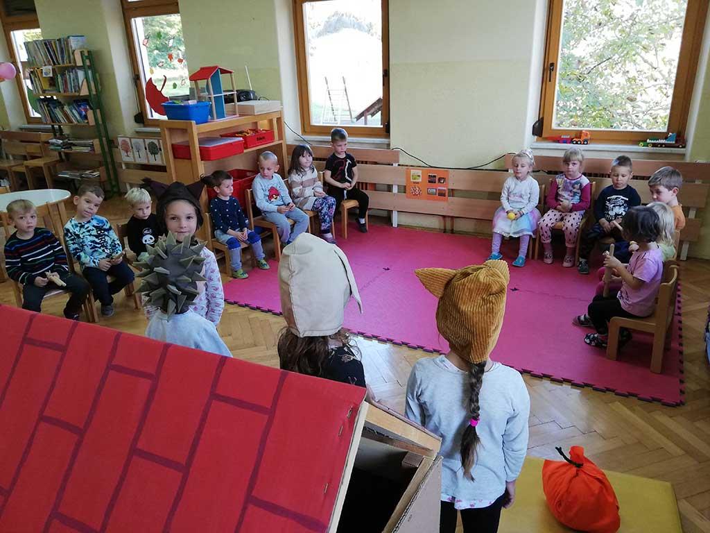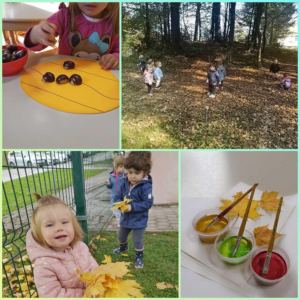 Med nas je ponovno prišla jesen, ki nam je prinesla tople barve in različne plodove, katere smo v vrtcu uporabljali pri dejavnostih in igri. V tednu otroka smo pripravili dneve druženja vseh otrok vrtca in šole (predstave, nastopi, skupne igre). V sodelovanju z DPM Letuš smo organizirali kostanjev piknik, kjer je lepo zadišalo po pečenem kostanju in drugih dobrotah. Obiskal nas je policist, skupaj smo obnovili pravila za pešce v prometu in se podali na sprehod. V sklopu meseca požarne varnosti smo se povezali z gasilci PGD Letuš. Prikazali so nam vajo gašenja požara nekoč in danes. Otroci so pri izvedbi tudi aktivno sodelovali in se ob tem zelo zabavali. Ogledali smo si prvo lutkovno predstavo Kje je lešnik in pričeli s projektom Mali Savinjčani beremo. Veliko časa smo prebili na igrišču, sprehodih in v gozdu, saj so nas cel mesec razvajali topli sončni žarki.