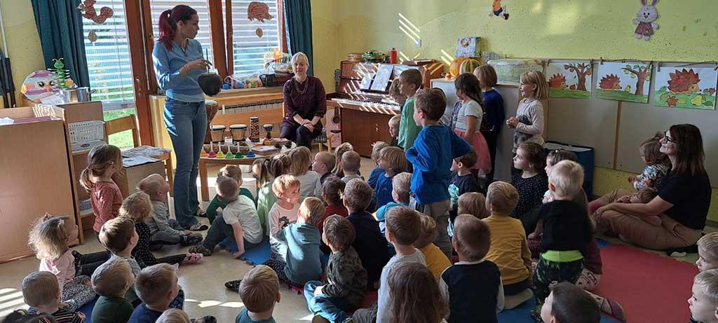 Jesenski mesec oktober nam ponuja ogromno možnosti za najrazličnejše dejavnosti. Tako smo v ta mesec vstopili kar s Tednom otroka. Letošnji naslov je bil SKUPAJ SE IMAMO DOBRO. Mi smo to vzeli zares in smo se vsak dan imeli res dobro. Teden smo začeli s ponedeljkom s pravili, nadaljevali z likovnimi in plesnimi dejavnostmi, prisluhnili zgodbici ob Kamišibaju in se odpravili na res dolg jesenski pohod. Teden otroka smo zaključili z glasbenim udejstvovanjem, peli, spoznali novo pesmico ter spoznali zelo zanimive, nevsakdanje instrumente.