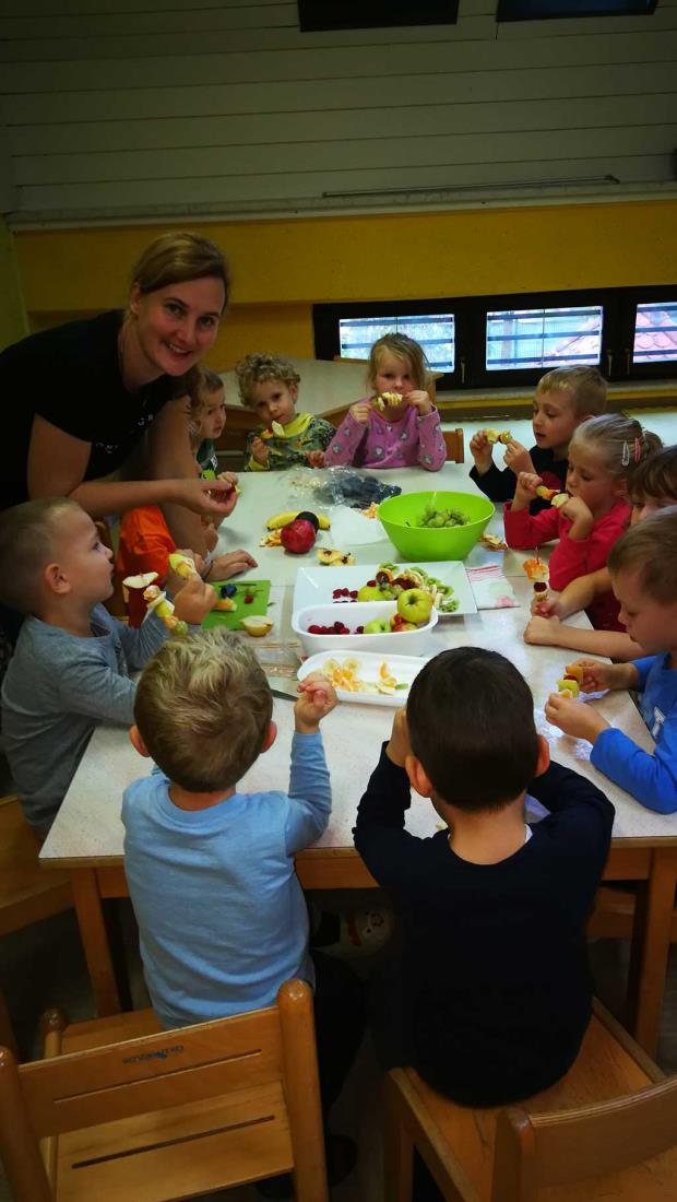Spoznali smo se tudi z običajem ličkanja koruze ter urili naše finomotorične spretnosti. Obeležili smo tudi da hrane in na ta dan pekli pito, izdelovali sadna nabodala, smoothije ipd.