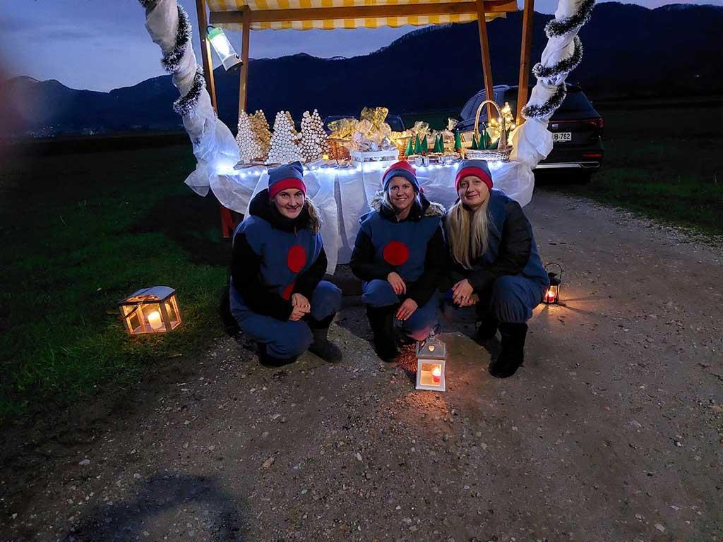 Letos so si otroci v vrtcu izdelali tudi lučke iz steklenih kozarčkov za vlaganje, s katerimi so si nato osvetljevali pot od stojnice do stojnice. Skupaj s starši so med potjo prebirali pesmico, ki jih je vodila do posameznih stojnic. Tako so zbirali štampiljke in raziskovali, kako je ime našemu škratku. Za nagrado so na cilju dobili sladko presenečenje, starši pa so pripravili čudovite stojnice, kjer smo se lahko okrepčali s palačinkami, piškotki ter toplimi napitki. Zahvala vsem staršem in otrokom, v praznični čas smo zakorakali sproščeni, veseli in povezani.