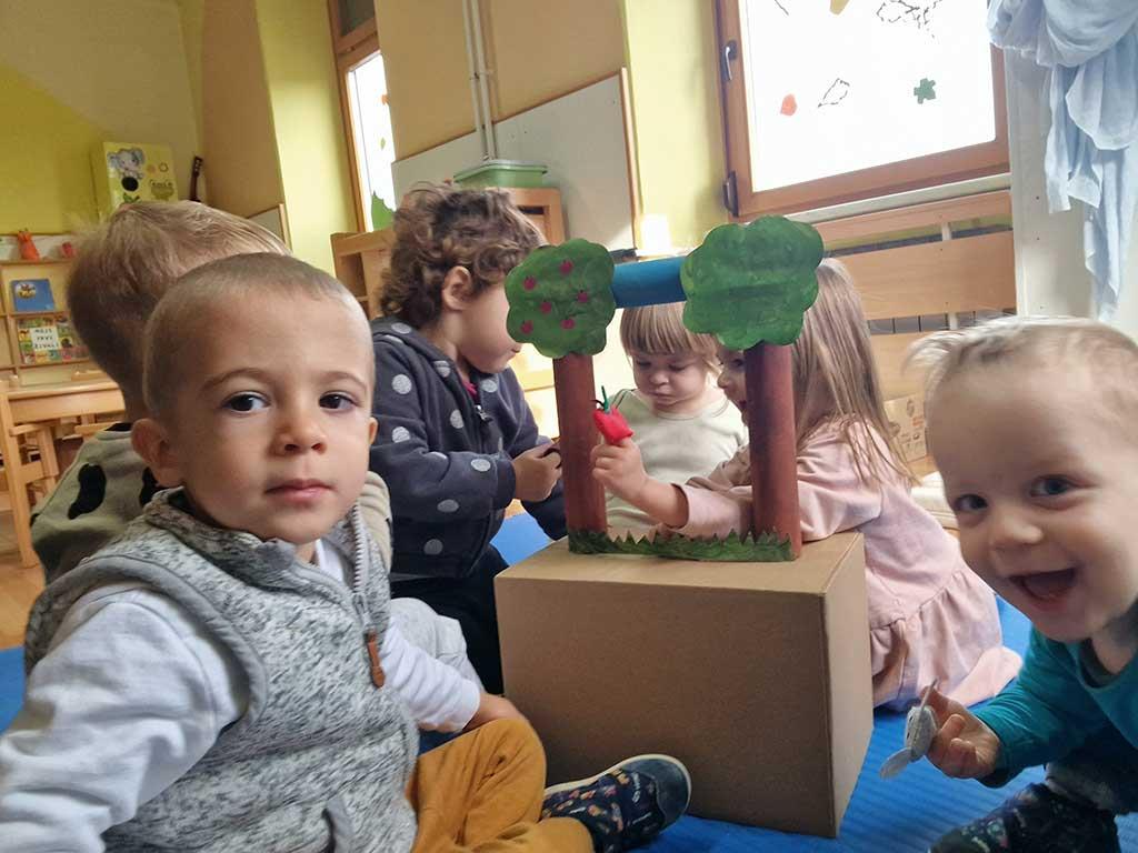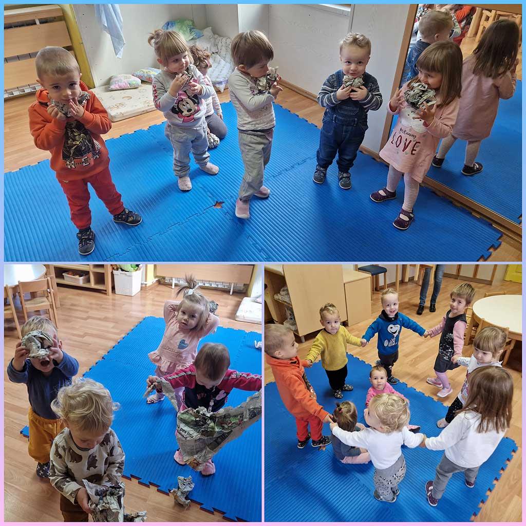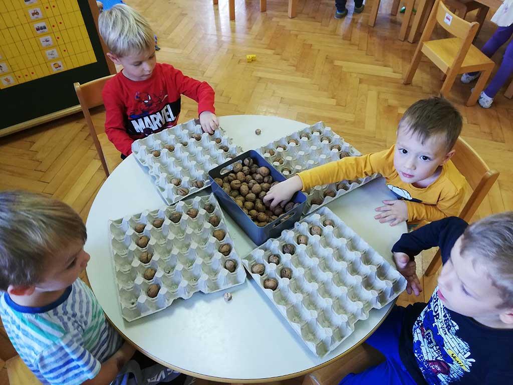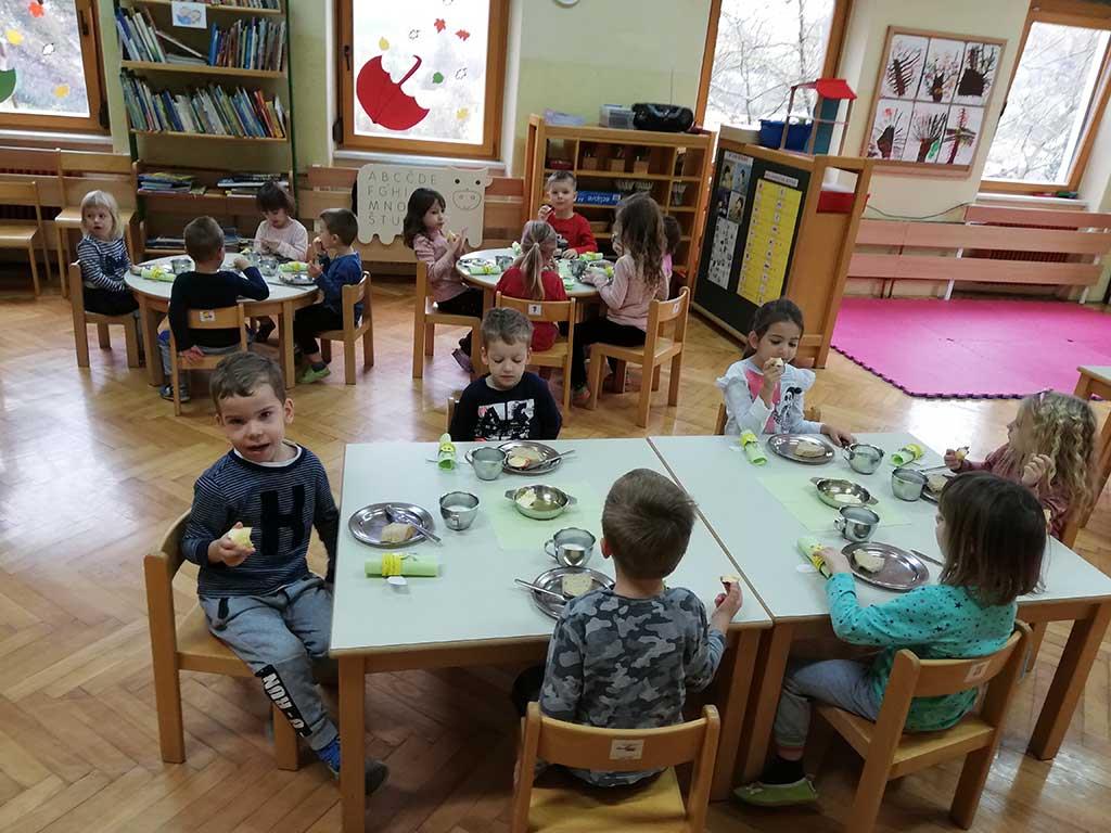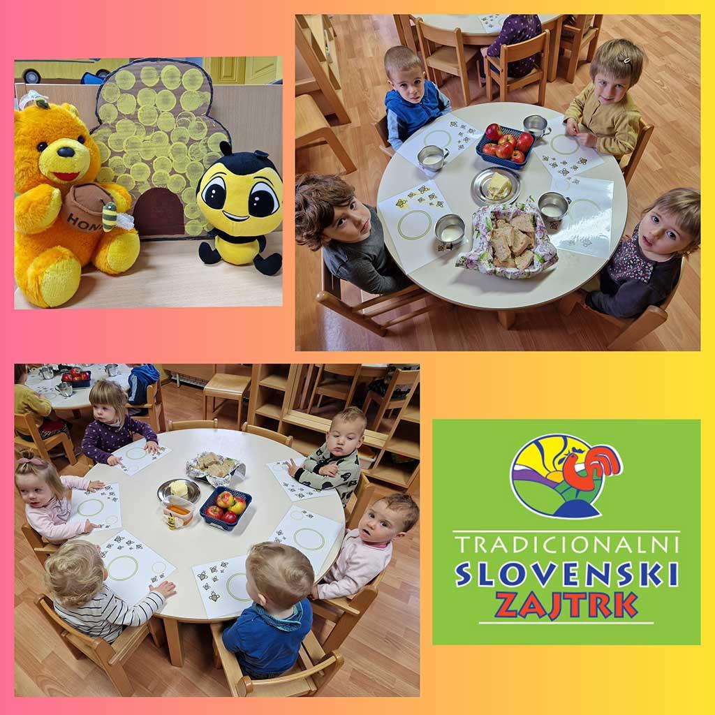 V začetku meseca novembra nam je vreme še dopuščalo veliko gibanja v naravi. Obeležili smo Tradicionalni slovenski zajtrk, Zajtrk z mlekom - super dan! V tem tednu smo spoznali opremo in delo čebelarja, pomen čebel, brali zgodbe, prepevali pesmice, si pripravili pogrinjke za zajtrk.