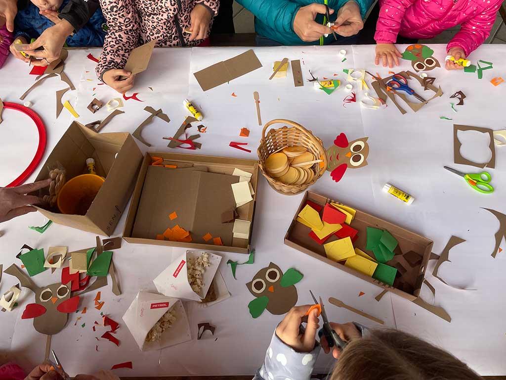 Na torkovo popoldne smo se strokovne delavke vrtca, otroci in njihovi starši zbrali na veseličnem prostoru v Braslovčah. Ob druženju smo poskrbeli za gibalne in ustvarjalne dejavnosti, ni manjkalo glasbe in rajanja, pa tudi posladkali smo se s slastnimi palačinkami. Obiskala nas je tudi Tetka Jesen. V tako veselem jesenskem popoldnevu, smo se greli s toplim čajem in seveda – s sveže pečenim kostanjem, katerega so pripravljali starši in stari starši otrok.