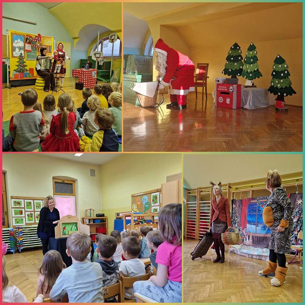 December v našem vrtcu je bil v celoti namenjen bližajočim se praznikom, ob katerih smo si želeli približati čarobnost meseca. Okrasili smo igralnice in si pripravili čajanko s piškoti. Ga. Vanja Iva Kretič nam je predstavila kamišibaj, ogledali smo si predstave Božična simfonija, Živali pri medvedu Tonetu in Opičja uganka ali Mamica, kje si? Pridno smo se pripravljali in nastopili na prazničnem koncertu v Kulturnem domu Letuš. December pa ne bi bil prazničen, če nas ne bi obiskal dobri mož, ki je vse otroke lepo nagovoril in obdaril.